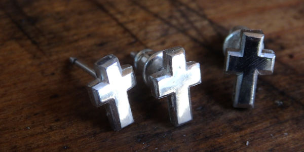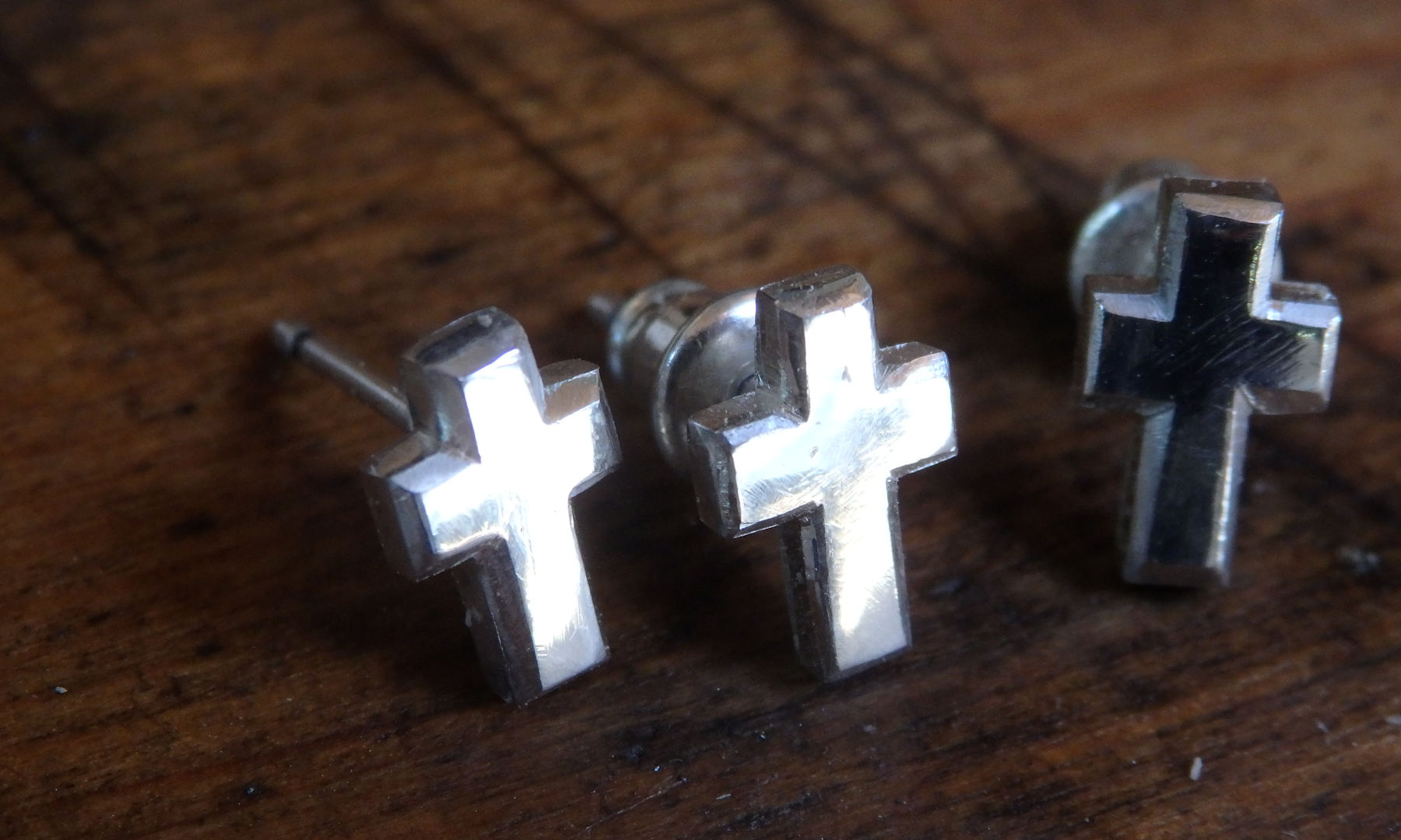 ポストを穴に刺して、銀ロウによるしっかりとしたロウ付けの作りと丁寧な仕上げ