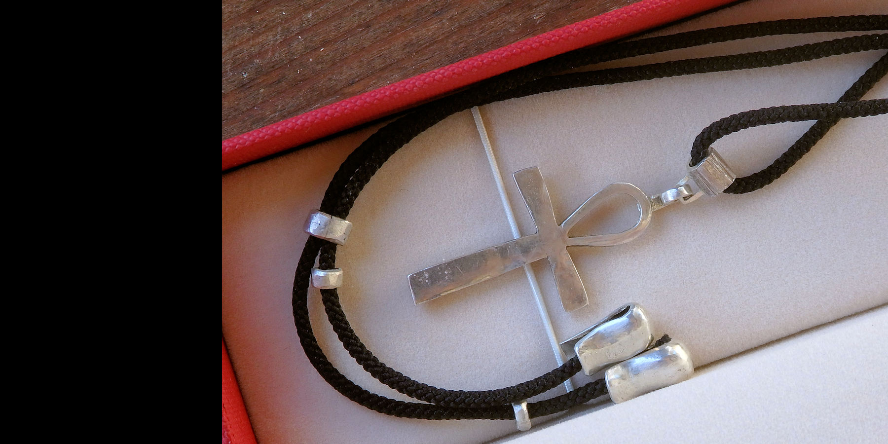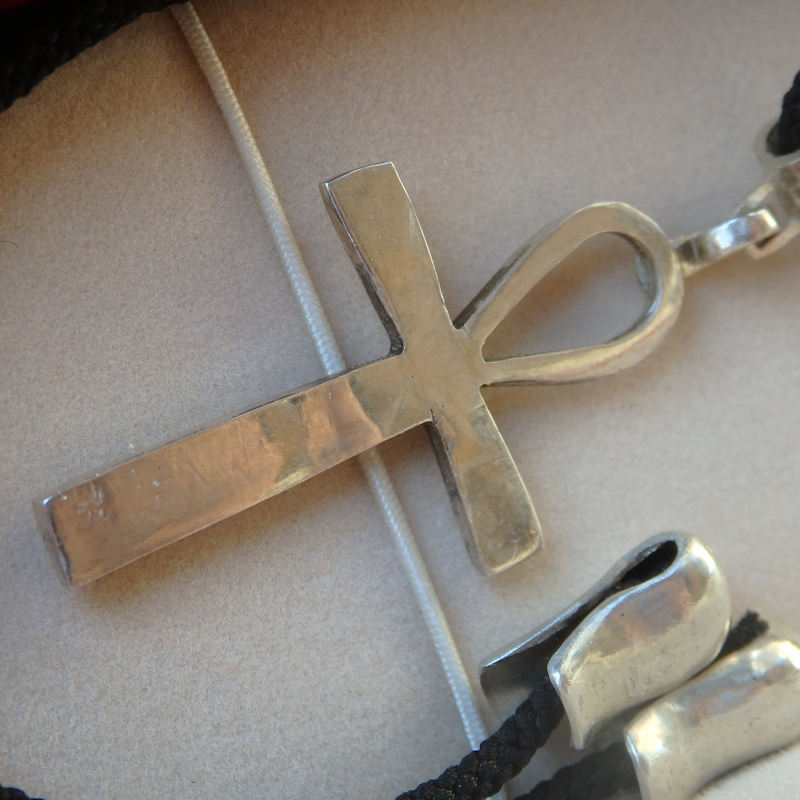 アンク十字のトップ ラテン語で「生命」という意味であり、 古代エジプトのヒエログリフで使われる表音文字であり、「アンク」と読みます。 輪廻の壁画や王名などに使用さる重要な文字であり図形でもあります。 |