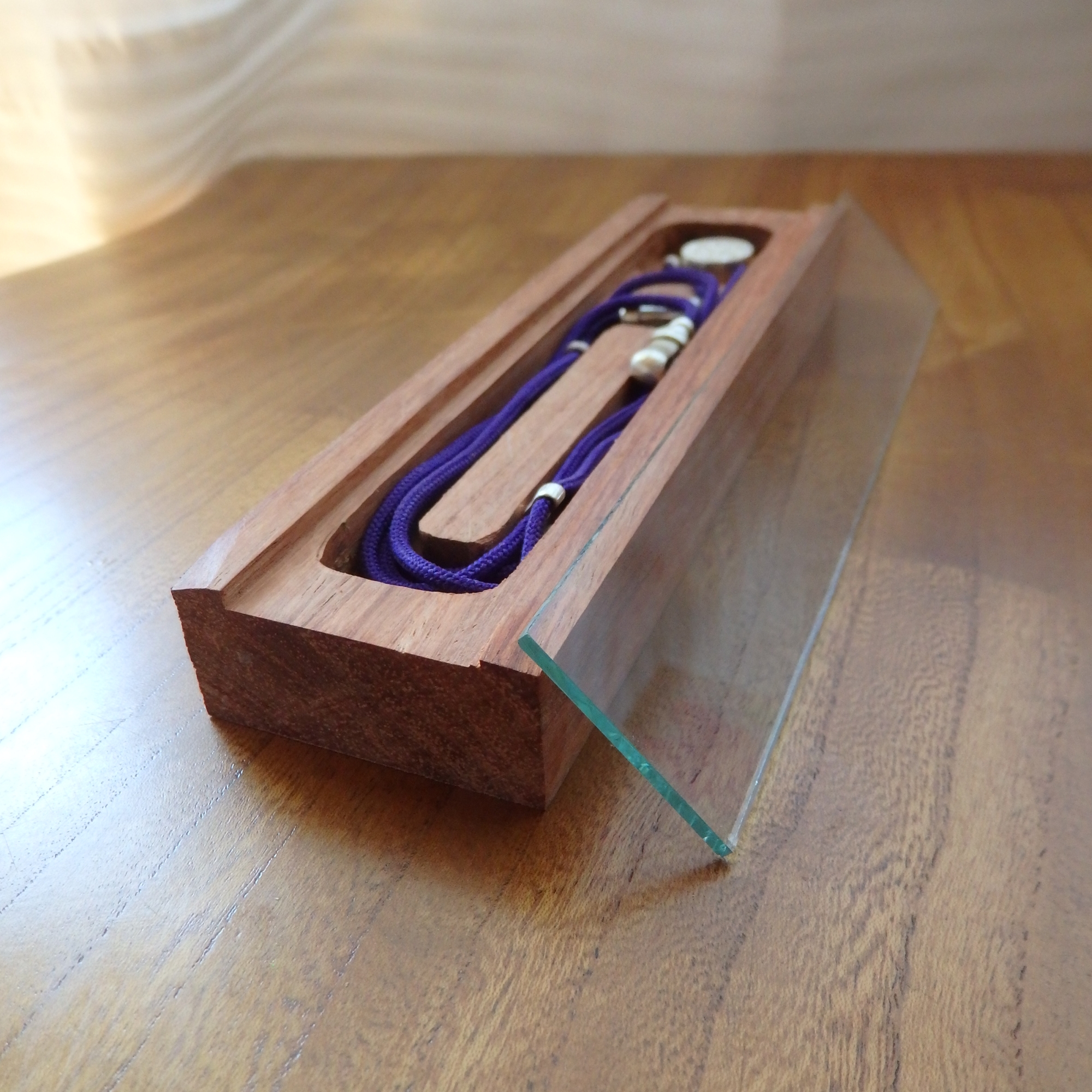 ![]() | 【ネックレスケースケース】 材質:カリンの木材、フロートガラス ケースサイズ:横幅16cm、奥行き4.5cm、高さ2cm、重さ11g *ペンダントトップとネックレスを綺麗に納めることができます。 | ||