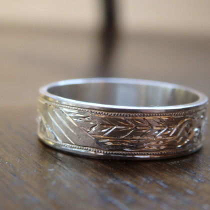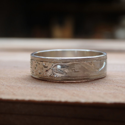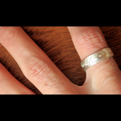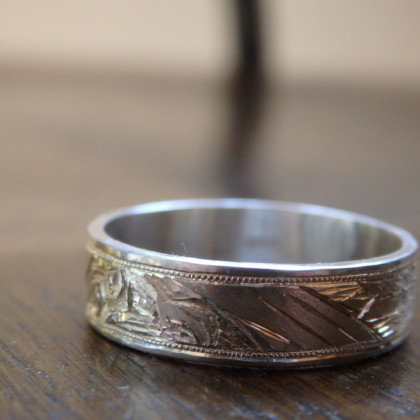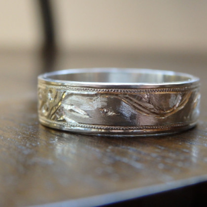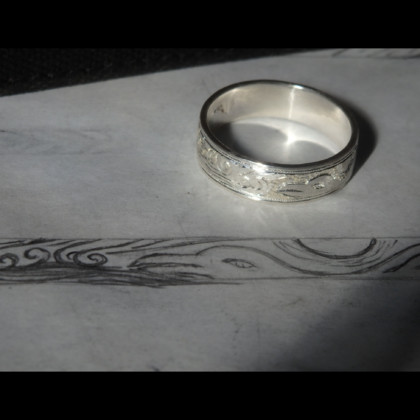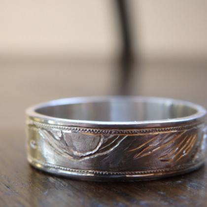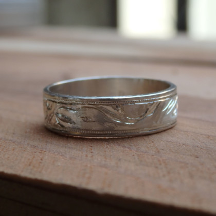 この図柄を彫るためにサイズの大きい指輪が必要なので、人差し指におすすめしてます。