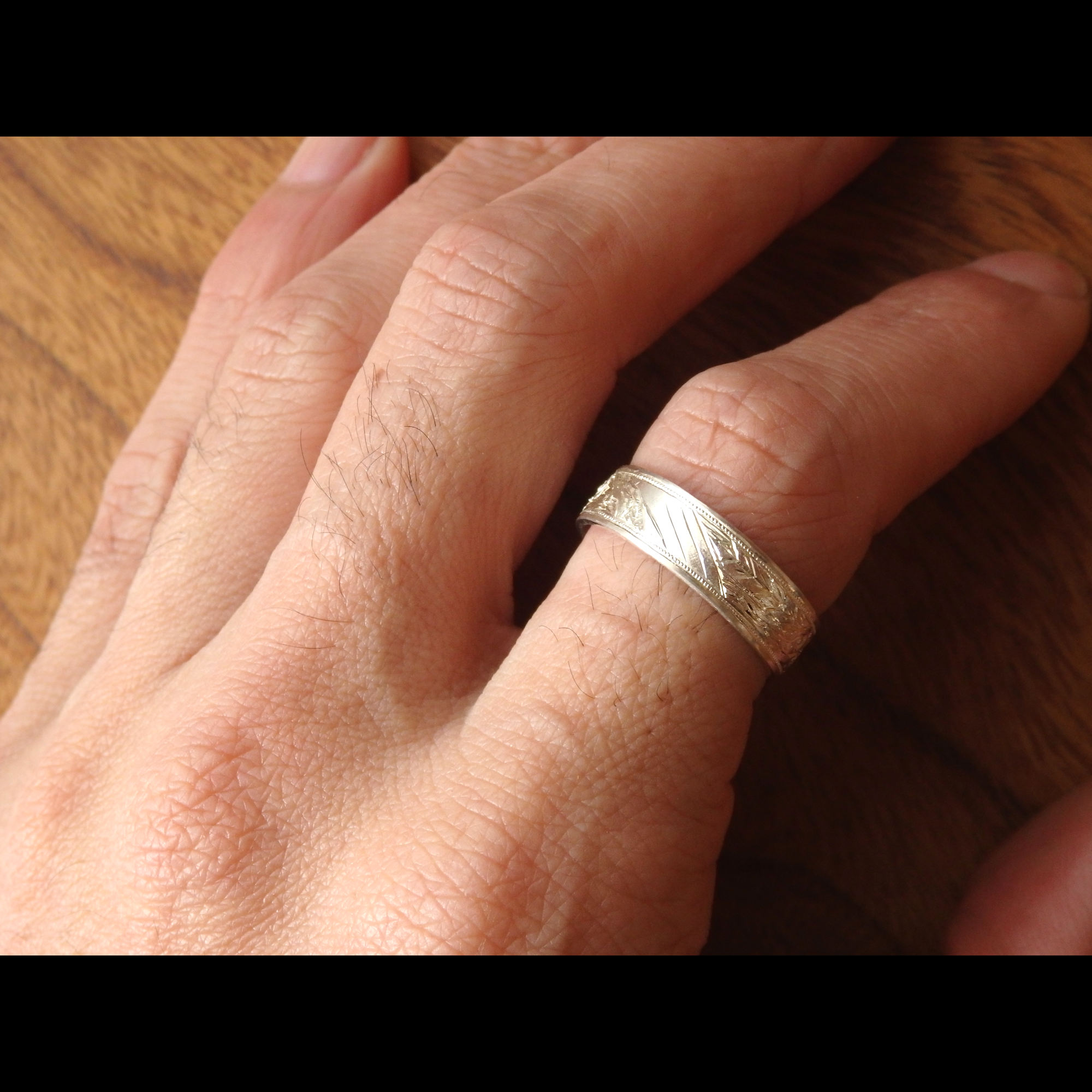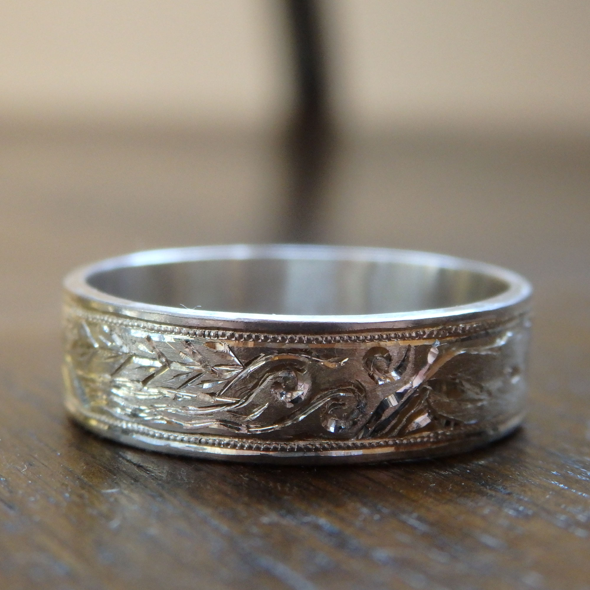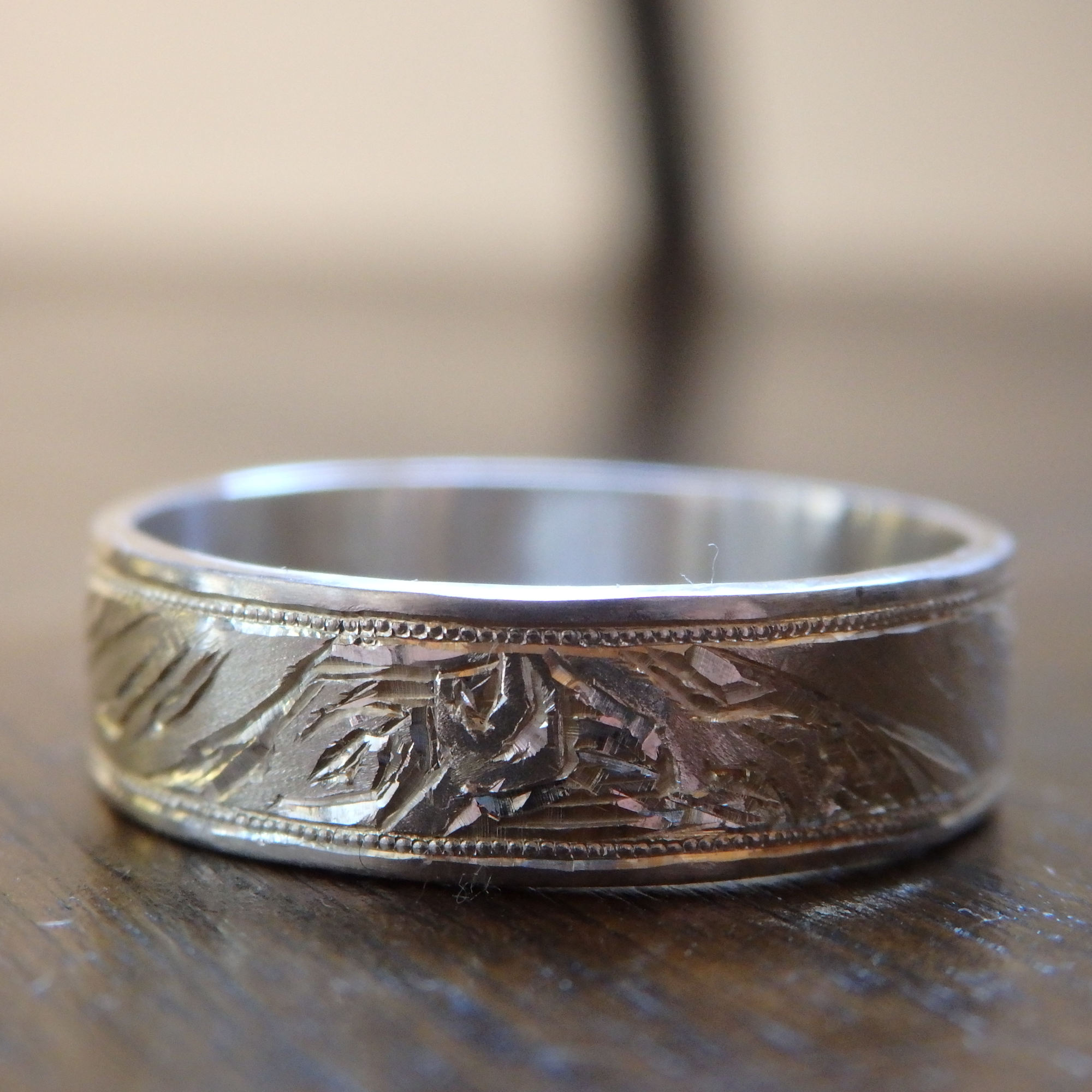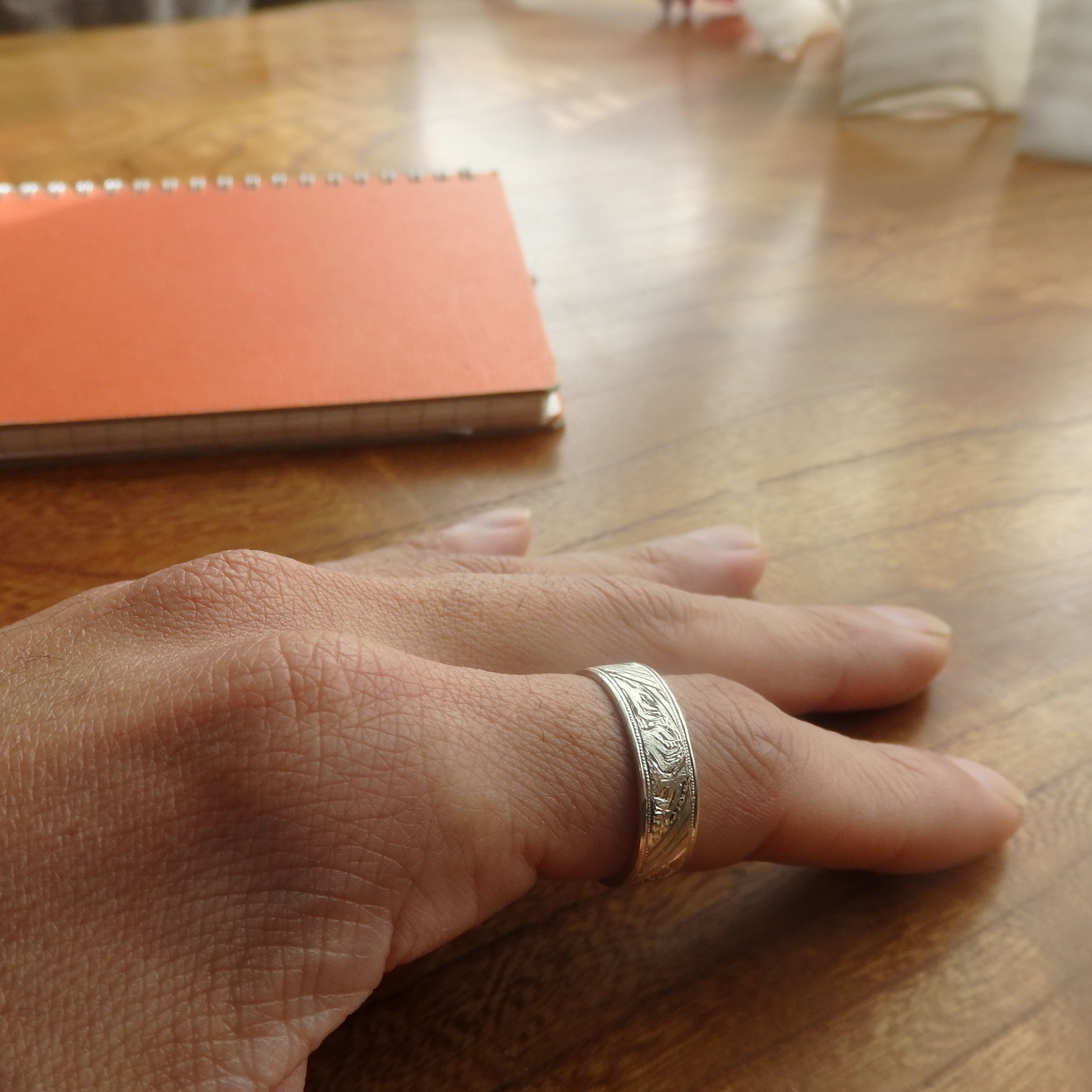 この図柄を彫るためにサイズの大きい指輪が必要なので、人差し指におすすめしてます。
