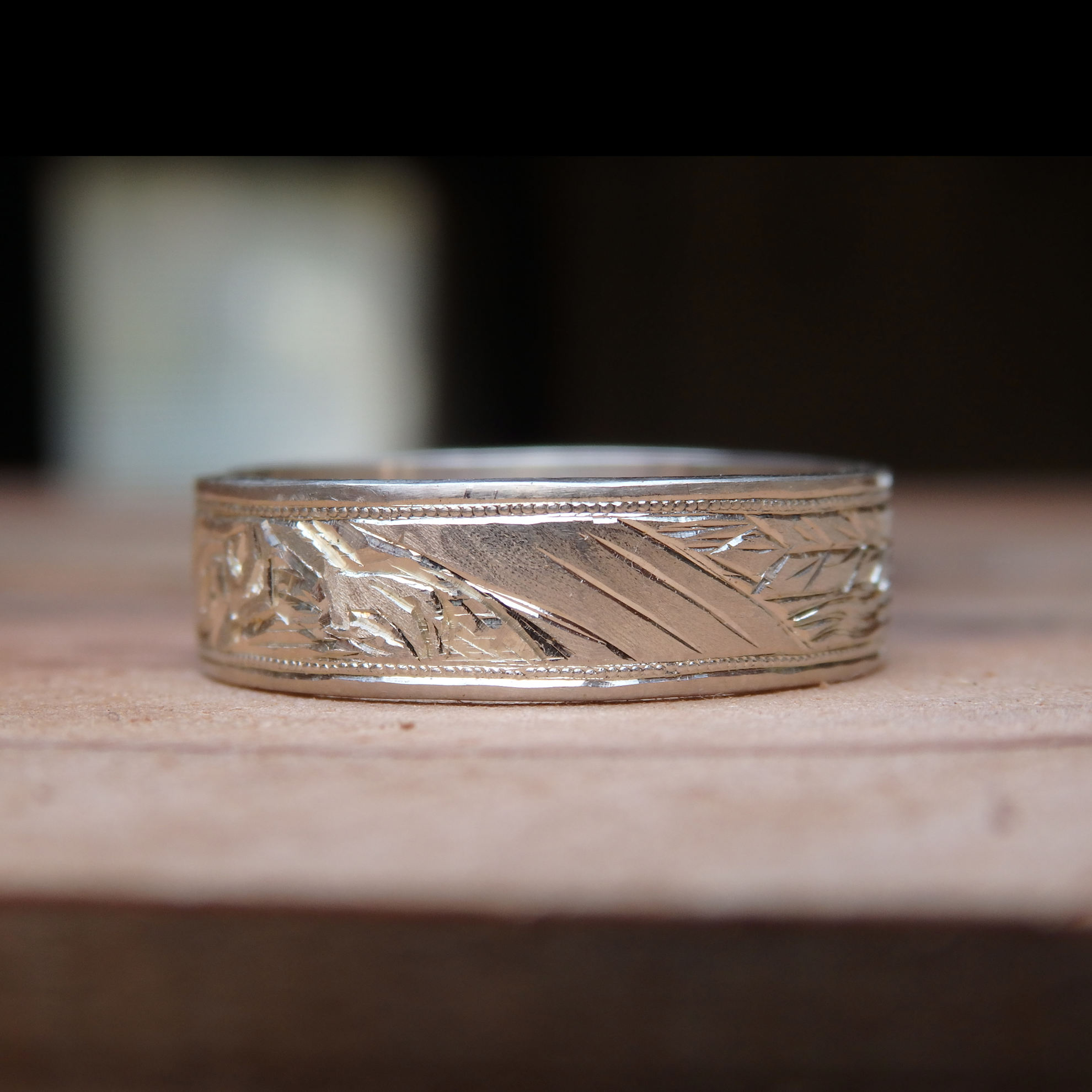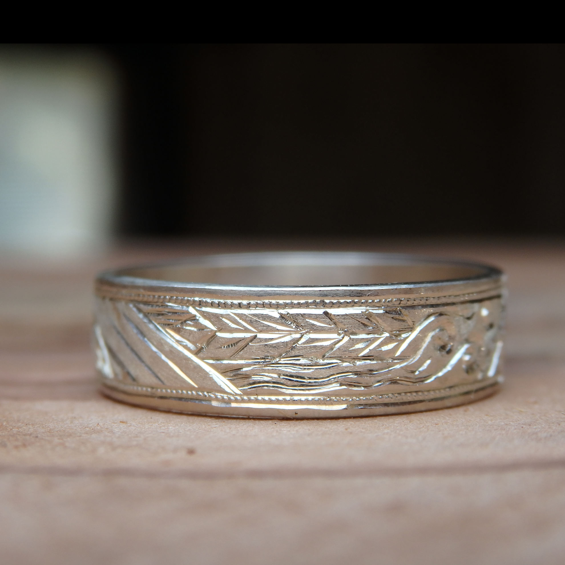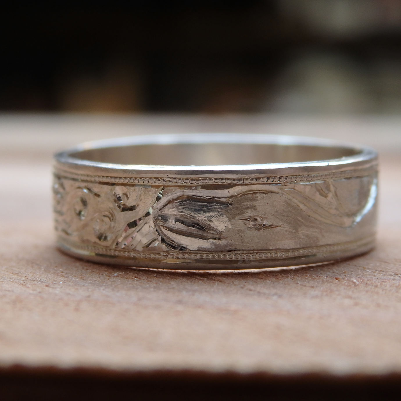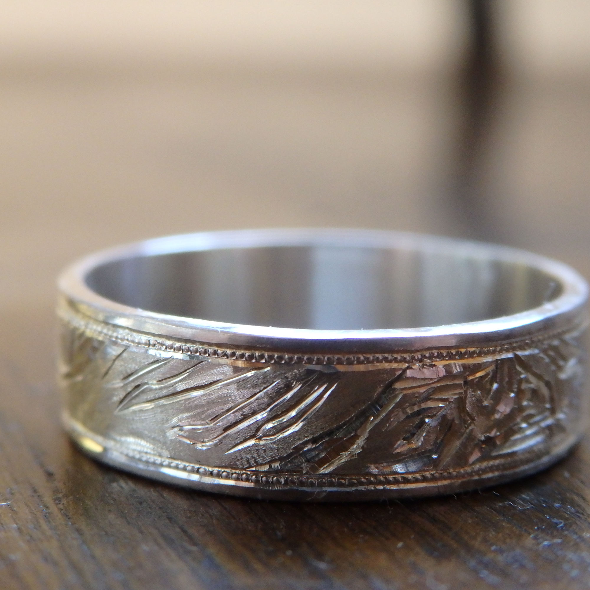 この図柄を彫るためにサイズの大きい指輪が必要なので、人差し指におすすめしてます。
